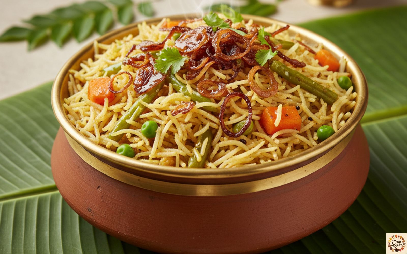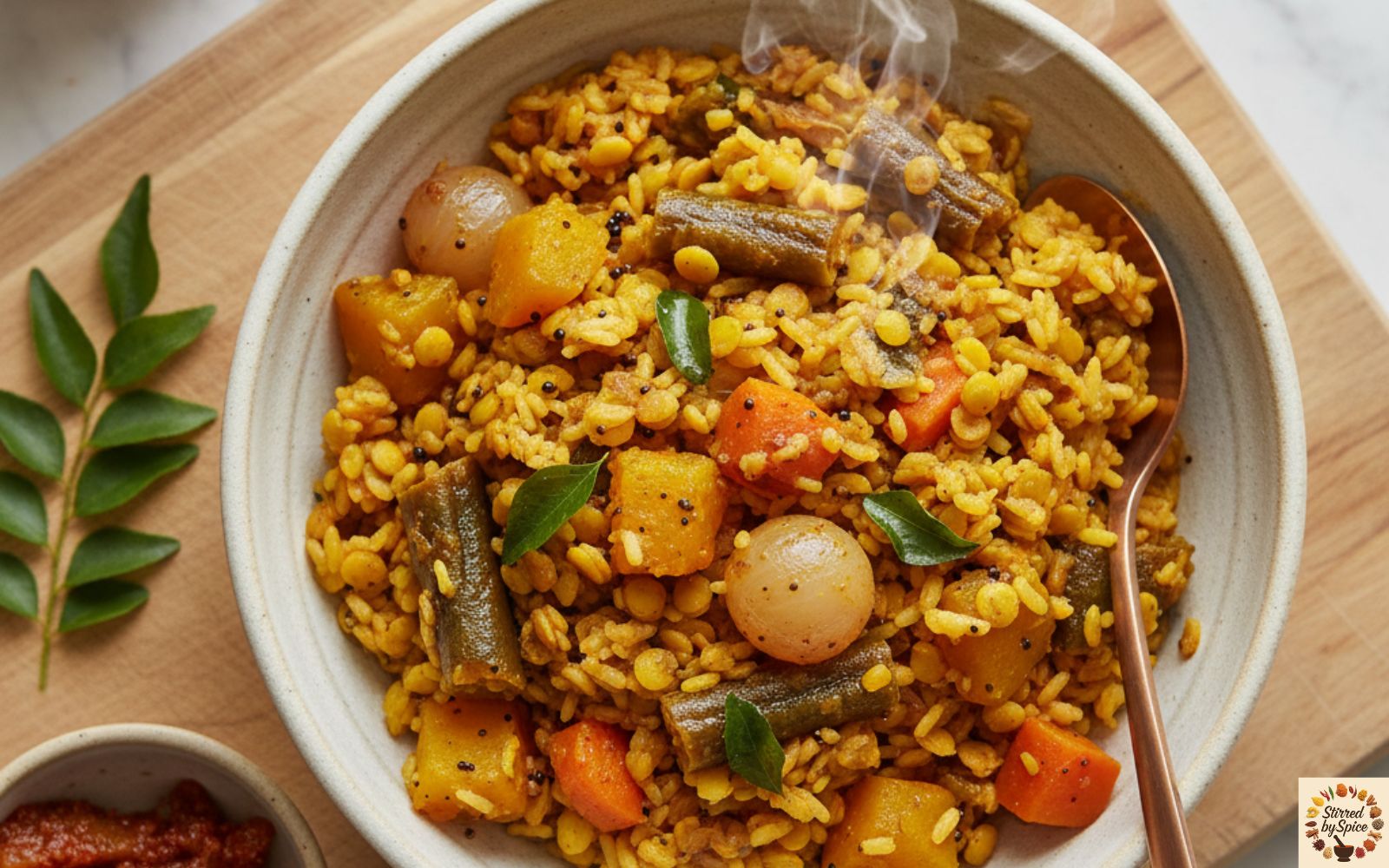 A bold, spicy semolina dish from Karnataka β rich with ghee, vegetables, and fragrant