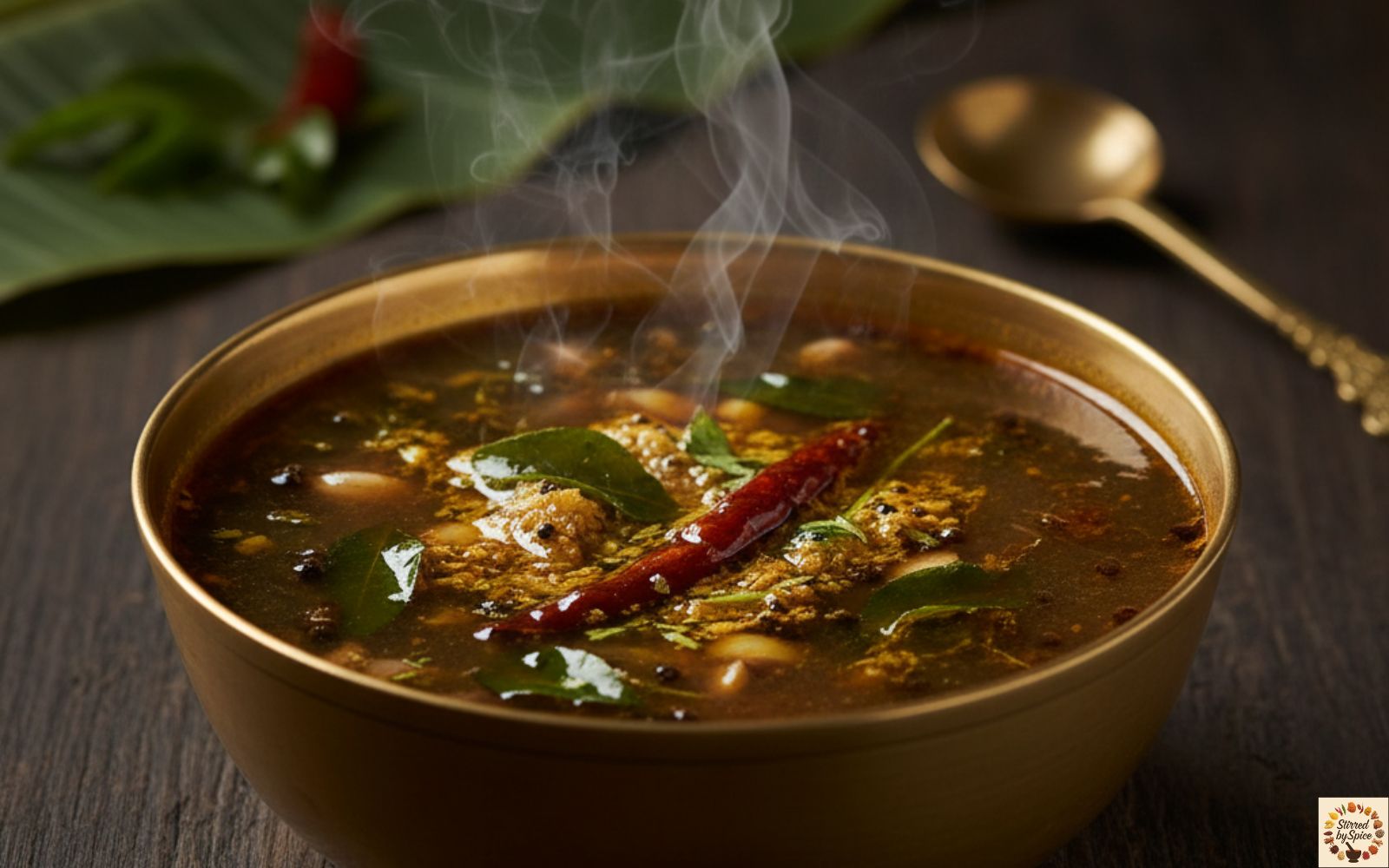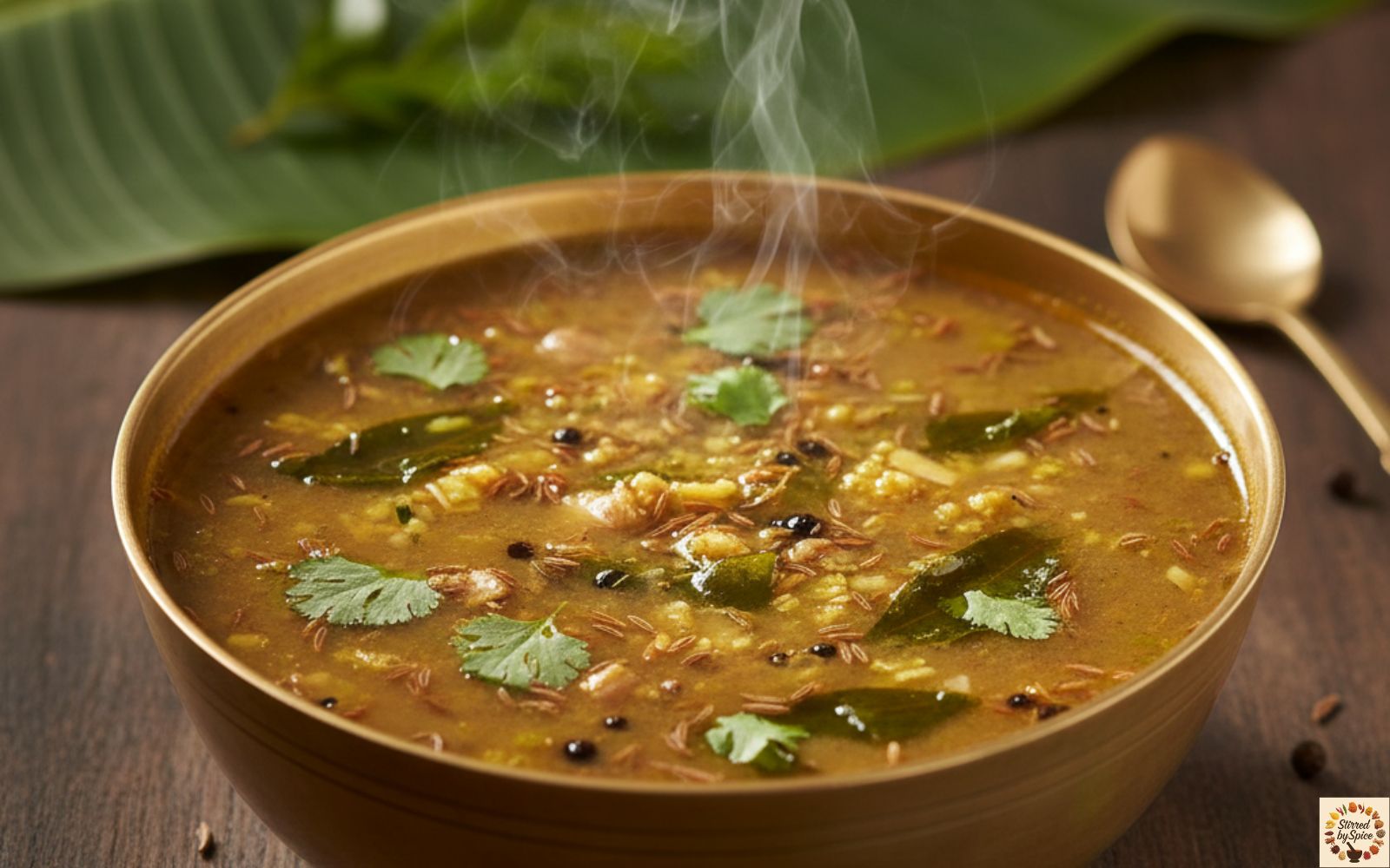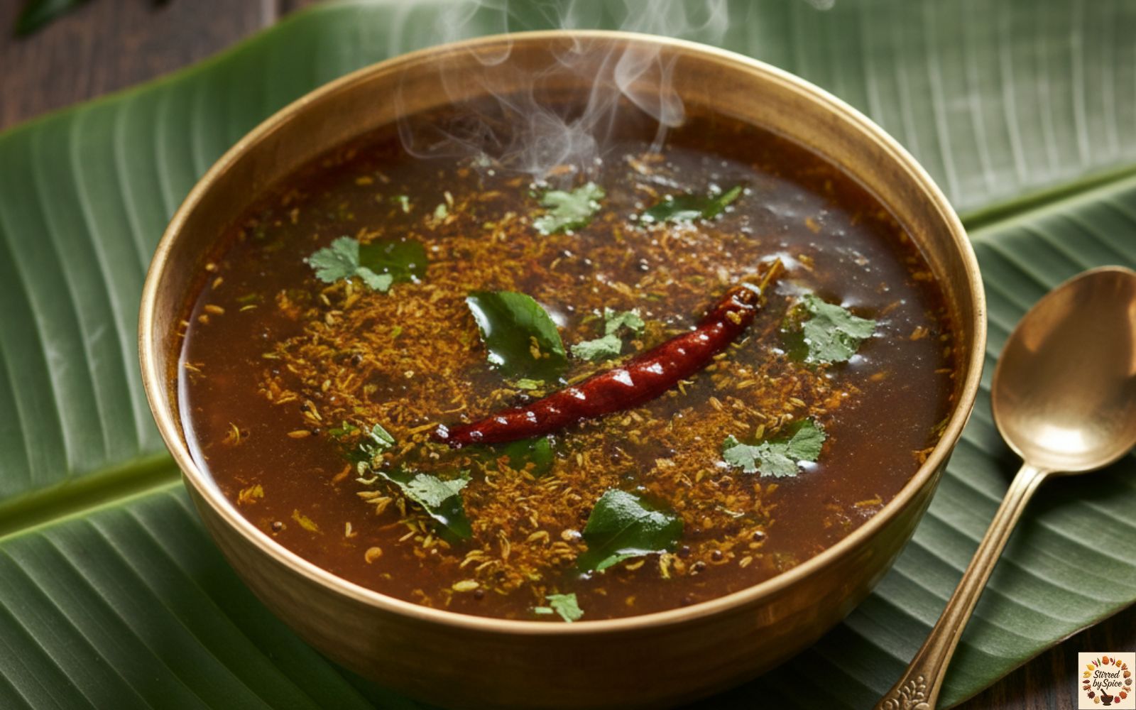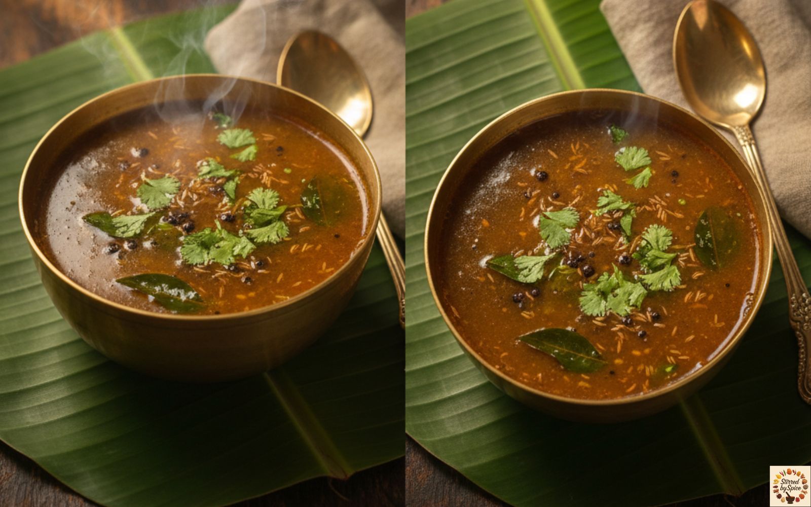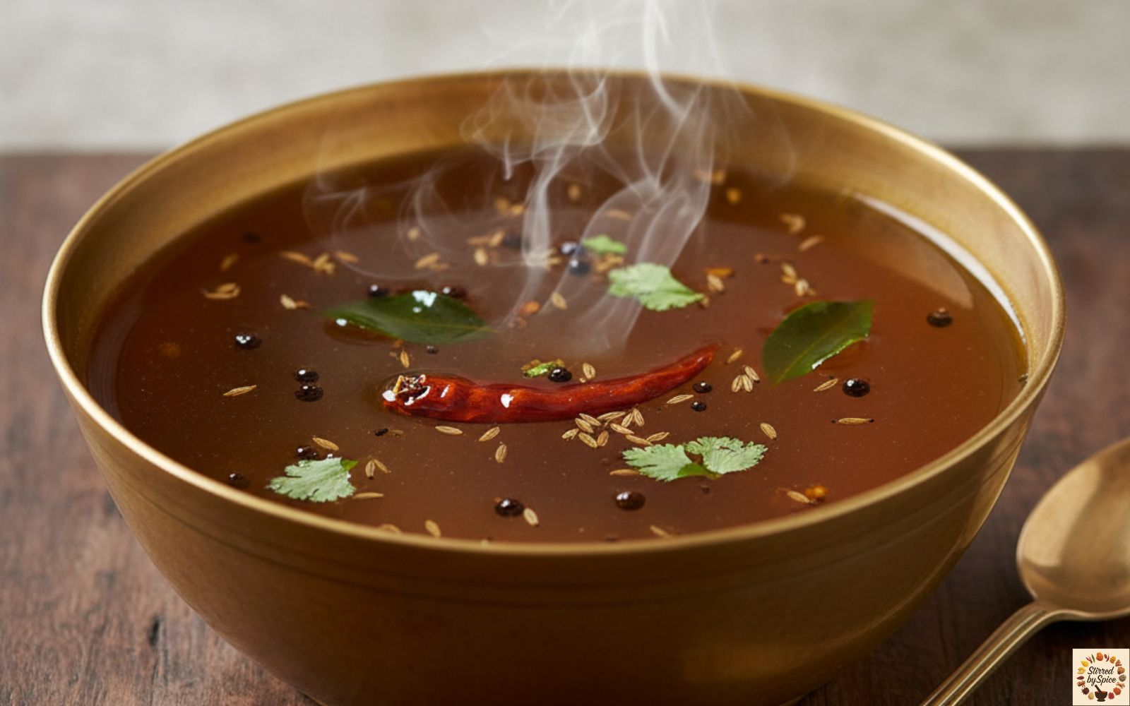 A warm, peppery South Indian rasam β tangy, aromatic, and deeply comforting β soon to soothe your soul.