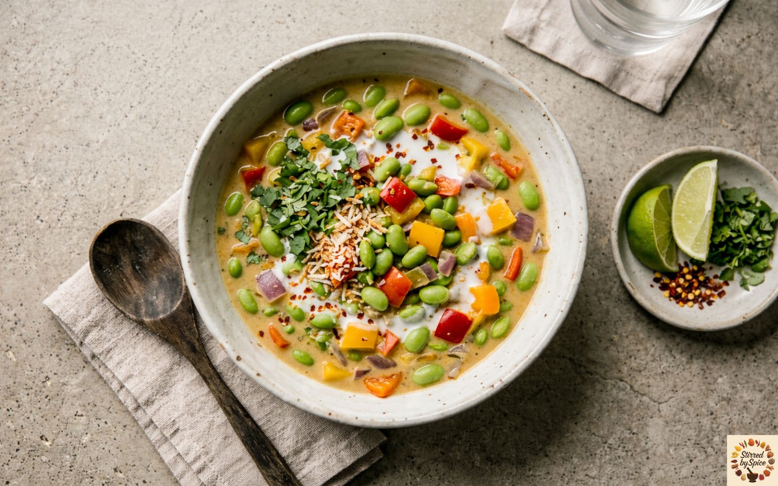 A quick, nourishing coconut curry with edamame and vegetables β simple, vibrant,