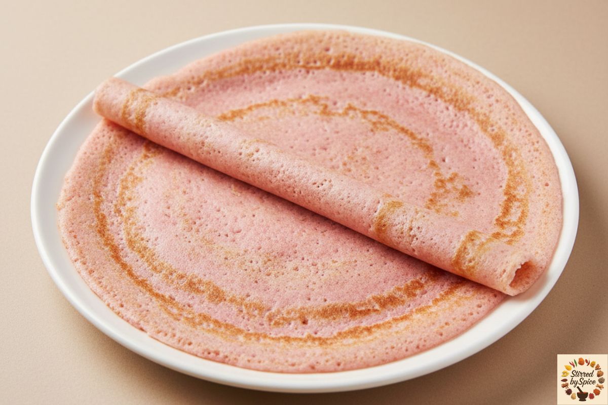 Beetroot dosa brings a gentle blush to a familiar comfort.