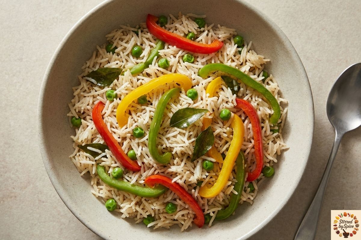 The crunch of colorful capsicum, the warmth of spices, and soft basmati rice come together in a way