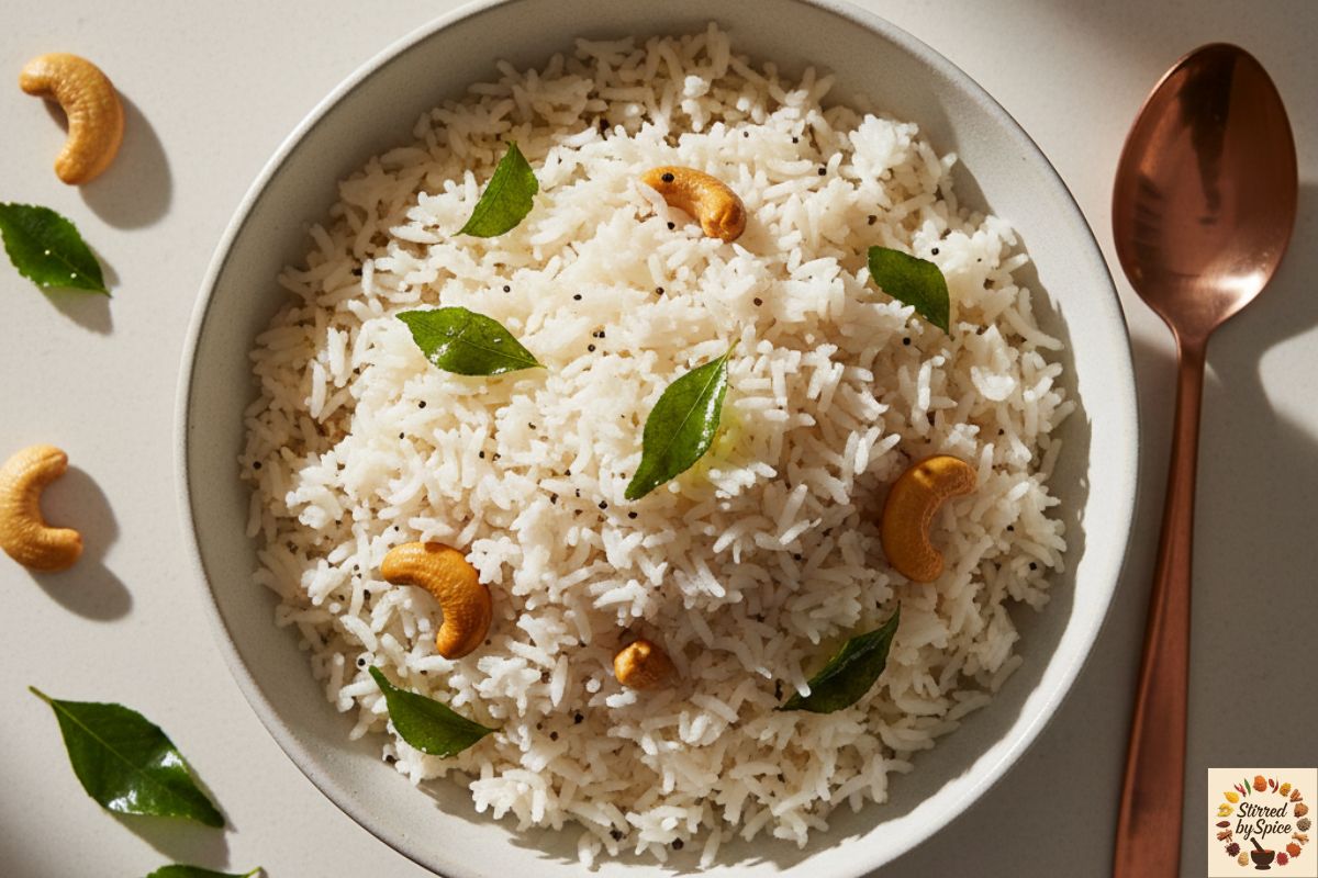 Coconut rice often appears without ceremony — a quiet constant after festivals, poojas, and long journeys.