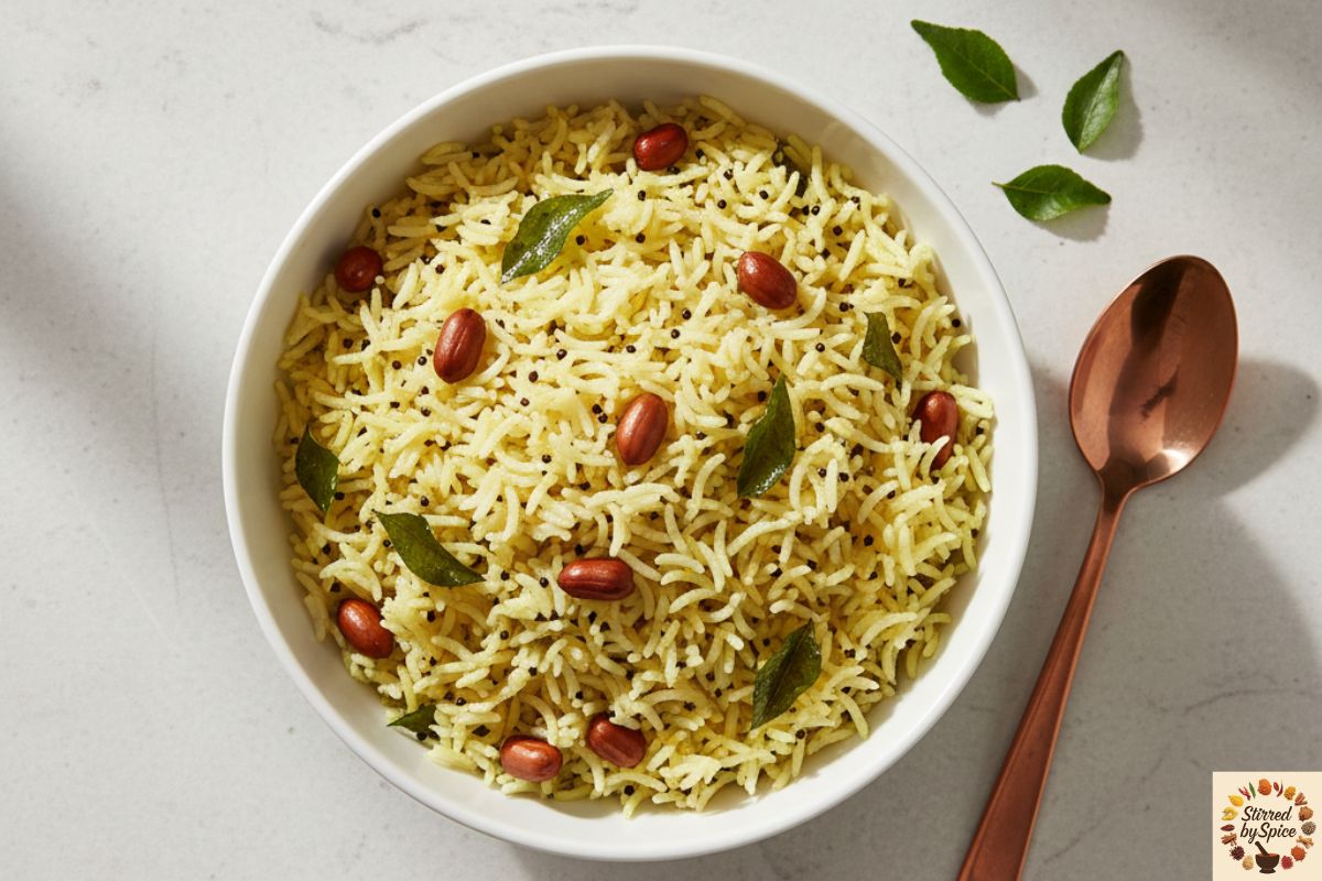 Lemon rice is sunlight in a bowl — tangy, fragrant, and quietly energizing.