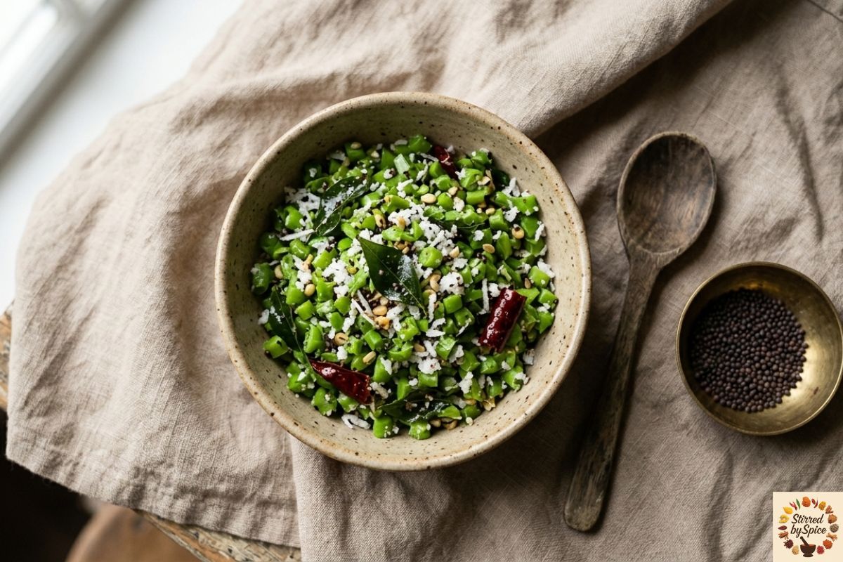 Poriyal tastes best when the peas remain slightly crisp β tender but not mushy.