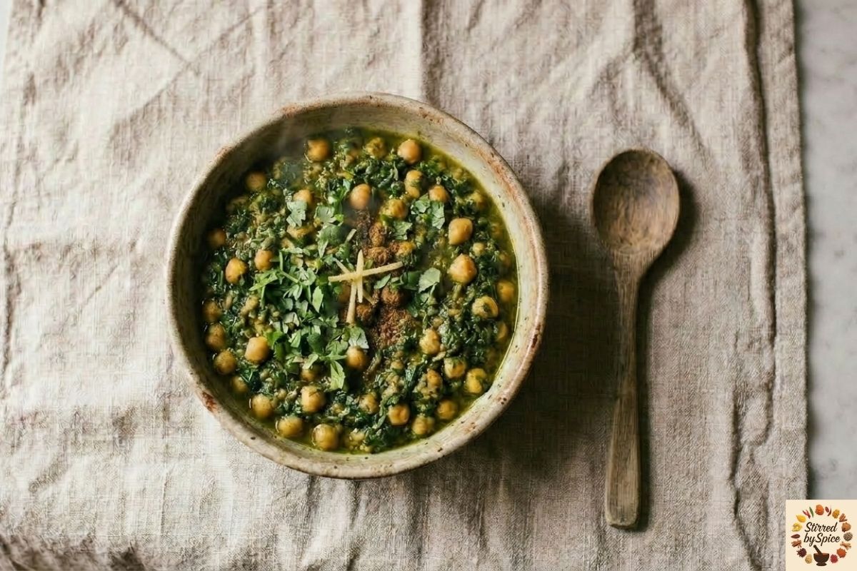 This dish beautifully sits between both — keerai kadalai in the South, chole palak in the North.
