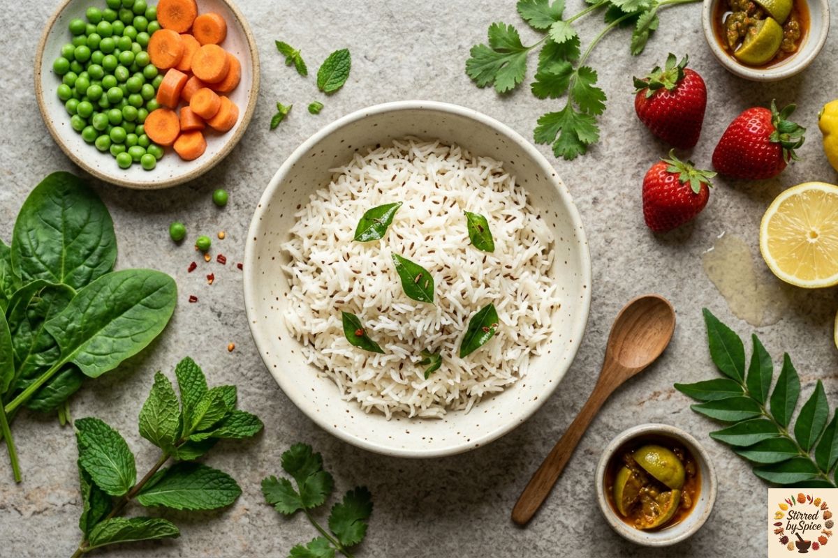 Fluffy rice tossed with coconut, curry leaves, and a gentle tempering β mild, aromatic, and easy to bring together on any day.